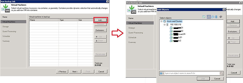 Virtual Machine kısmından hangi sanal sunucunun yedeÄŸini alınacaksak ekleyip, Add diyerek Backup Job’ımız içerisine ekliyoruz